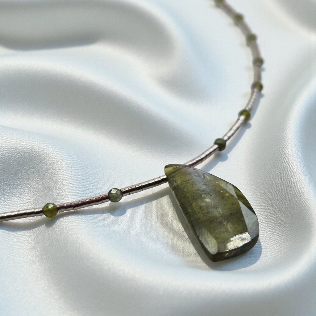 Náhrdelník s tmavě zeleným turmalínem
