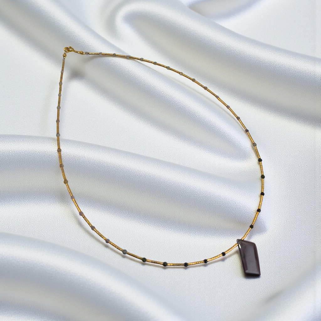 Jemný a nadčasový náhrdelník, který staví do popředí přirozenou krásu turmalínu. Minimalistický design nechává vyniknout samotný kámen a jeho jedinečný charakter. Šperk působí klidně, vyváženě a přirozeně- je určený pro každodenní nošení i výjimečné chvíle.