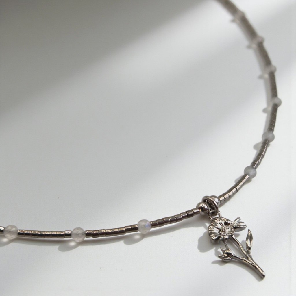 Jemný, svěží a optimistický šperk inspirovaný jednoduchou krásou přírody. Přívěsek ve tvaru sedmikrásky symbolizuje čistotu, nevinnost a radost z drobných okamžiků. Jeho rhodiovaná povrchová úprava dodává decentní stříbřitý lesk a zároveň zajišťuje vysokou odolnost vůči opotřebení. V kombinaci s křišťálem působí šperk lehce, vzdušně a přináší pocit klidu i čistoty.