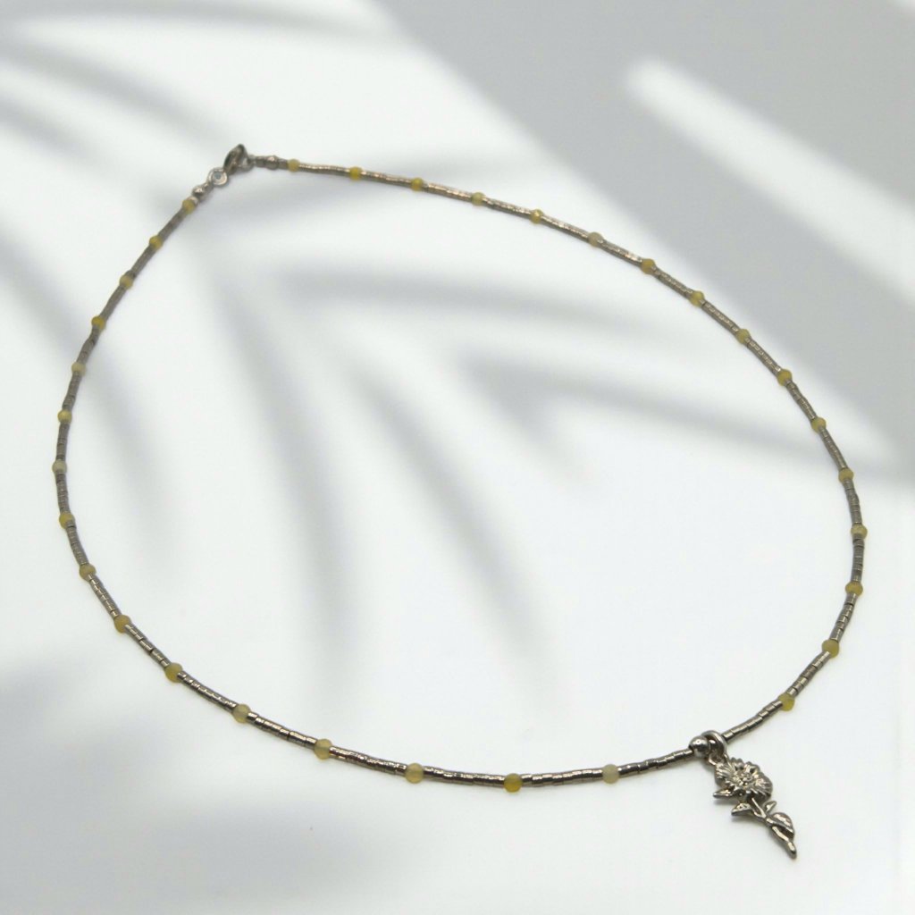 Rhodiovaný náhrdelník s přívěškem ve tvaru tulipánu a kamenem žlutý opál. Symbol radosti, světla a nových začátků. Spojuje chladný lesk rhodia s teplým tónem opálu a vytváří šperk, který působí optimisticky, elegantně a svěže.